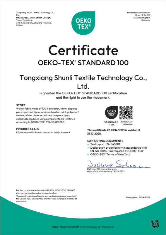 Tkanina podszewki poliestr/rayon, ze względu na swoją wyjątkową doskonałą wydajność, stała się idealnym wyborem do tworzenia wysokiej klasy odzieży zewnętrznej. Tongxiang Shunli Textile Technology Co., Ltd., jako ekspert w dziedzinie tkanin podszewki poliestrowej, polegał na latach akumulacji technicznej oraz profesjonalnych badań i rozwoju, aby wytwarzać poliestr-viscose (poliestr/rayon), które są szeroko stosowane w garniturach, skórze, modzie i innych pól odzieżowych, a także są rozpoznawane i faworyzowane przez przemysł. Tkanina podszewki poliestrowej/rayon łączy zalety włókien poliestrowych i wiskozowych i jest szczególnie odpowiednia do potrzeb odzieży na zewnątrz w zmieniających się warunkach pogodowych. Jest popularny wśród konsumentów.